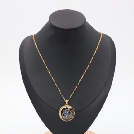 سلسال لفظ الجلالة لون أزرق مع زركون لون ذهبي كفالة سنتين ضد تغير اللون