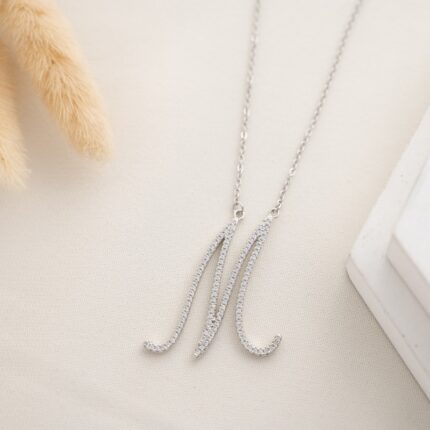 سلسال فضي زركون بتصميم حرف M