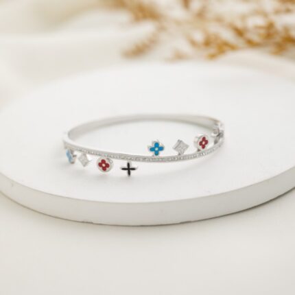 سوار فضي زركون أبيض بتصميم وردات ملونة