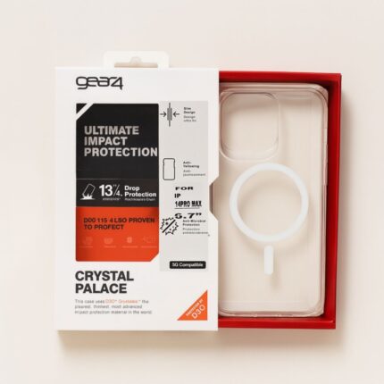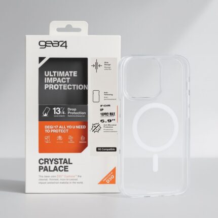 كفر شفاف مع حلقة مج سيف متين ومقاوم للصدمات ايفون 16 برو ماكس ماركة gear4 العالمية