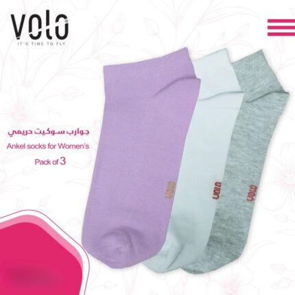 جوارب قطنية قصيرة (3 أزواج) من فولو للنساء بألوان متعددة