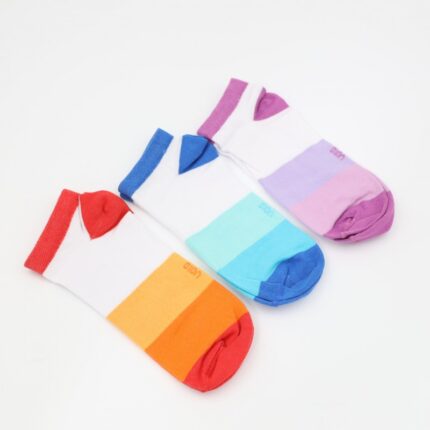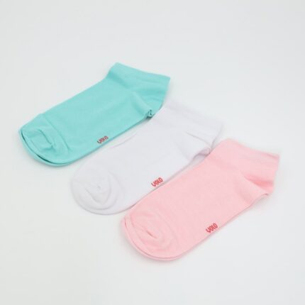 جوارب قطنية قصيرة (3 أزواج) للنساء بألوان متعددة أبيض وزهري وأخضر
