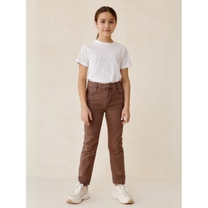 طقم بنطلون وتيشيرت للأطفال لون بيج وبنفسجي