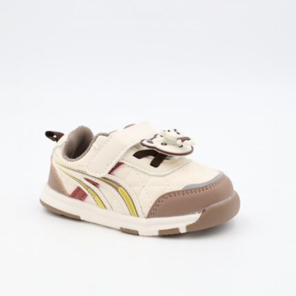 حذاء برباط للأطفال بتصميم دبدوب لون بني و أبيض