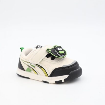 حذاء برباط للأطفال بتصميم دبدوب لون كاكي و أبيض