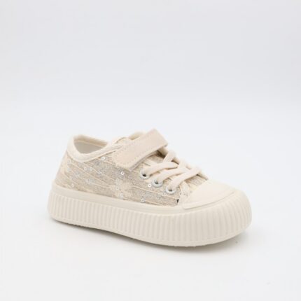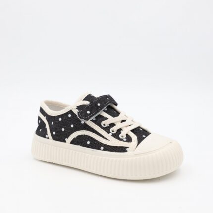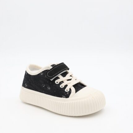 حذاء برباط ولاصق بلمعة للأطفال لون أسود و أبيض