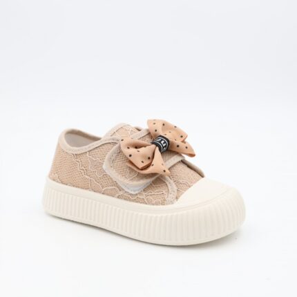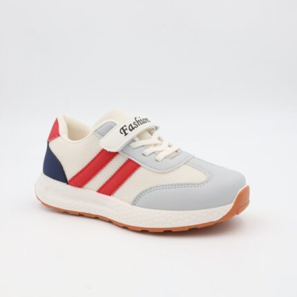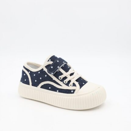 حذاء برباط ولاصق بلمعة للأطفال لون كحلي و أبيض