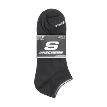 Skechers Kids’ Unisex Non Terry No Show (3 Pair) Socks (31-35)-Black