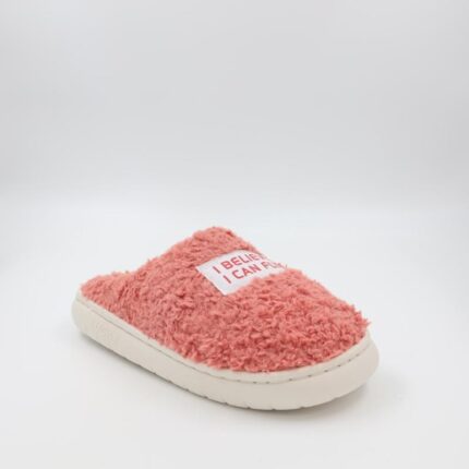 شبشب شتوي فرو بتصميم I Believe I Can Fly للنساء لون زهري ونعل زهري