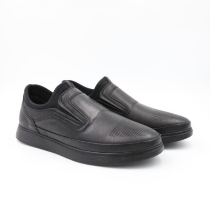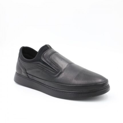 حذاء كاجوال طبي جلد بدون رباط للرجال لون أسود