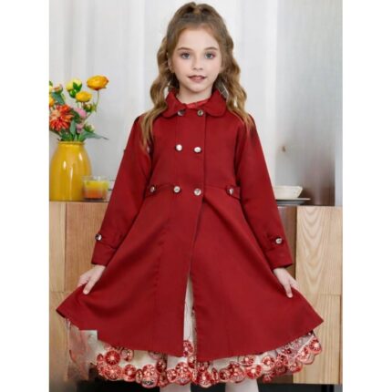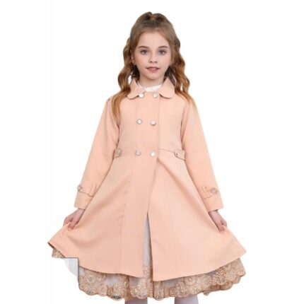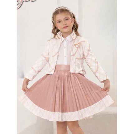 فستان بناتي قطعتين مميز لون زهري وبيج