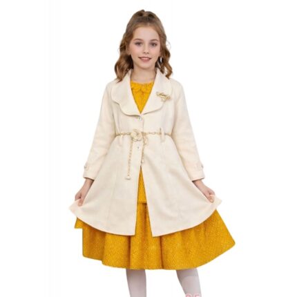 فستان برسمة ارنب مع طاقية بناتي لون اصفر