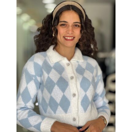 جرزة ستاتي شتوي لون ابيض نقشة أزرق فاتح Happiness İstanbul