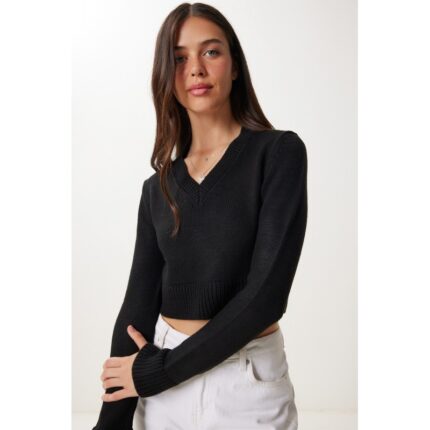 بلوزة ستاتي شتوي لون أسود Happiness İstanbul