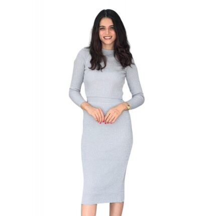 طقم ستاتي لون سكني مع لمعة تنورة وبلوزة defacto