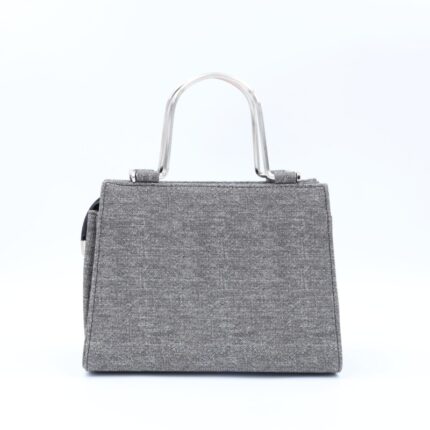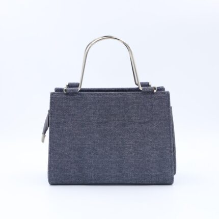 شنطة حقيبة يد نسائية من القماش بتصميم عصري ومقبض معدني جينز بالون الرمادي
