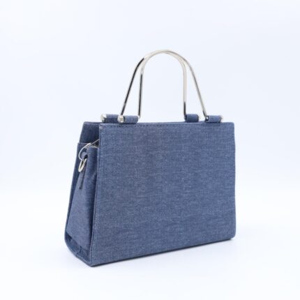 شنطة حقيبة يد نسائية من القماش بتصميم عصري ومقبض معدني جينز بالون الأزرق