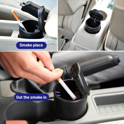 مكتة سجائر دائرية مضيئة لون اسود داخل السيارة