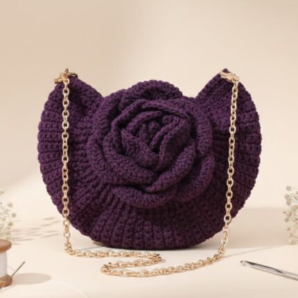 شنطة وردة مع يد سلسلة لون بنفسجي – نكشة فن