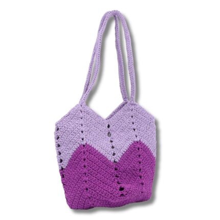 شنطة كروشية عملية مع يد كروشية لون ليلكي – نكشة فن
