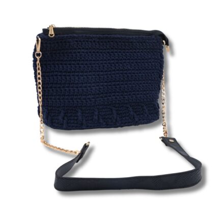 شنطة كروشية مع يد سلسلة لون كحلي – نكشة فن