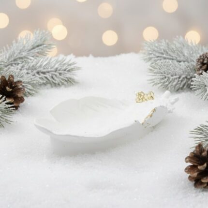 صحن ديكور جبس على شكل ورقة لون اوف وايت وذهبي