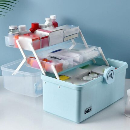 علبة ادوية حجم صغير ازرق وابيض