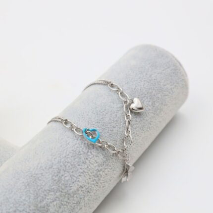 سوار سلسلة مع تعليقات فراشة لون فضي